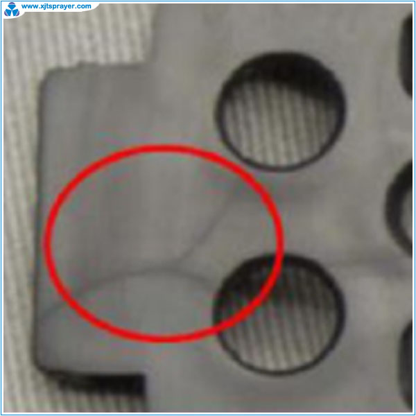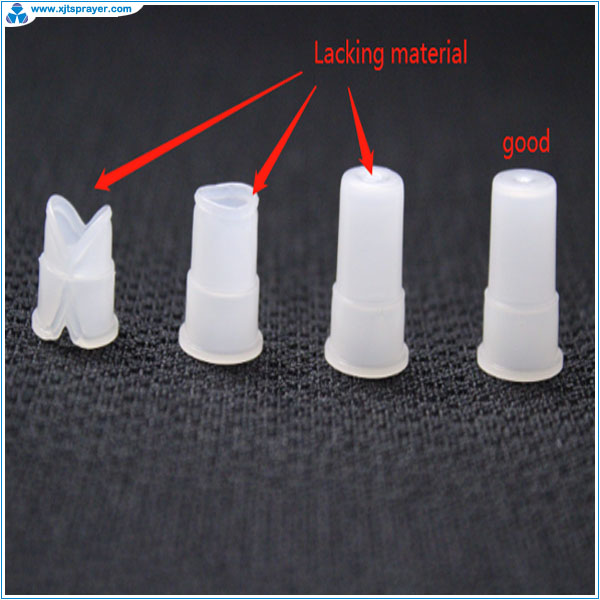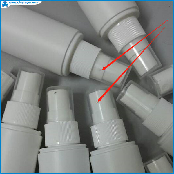 Flash is the overflow of melt plastic into the joint surface of two parts of the mold. The flashes of a sprayer is not obvious but some flashes do affect the quality of the sprayer. For Example, the flash at nozzle hole will generate small drop in the mist. Flash formation is not only because of the precision of mold fitting, but also because of the nature of different plastics. The flash of PP is easier to generate than that of POM. The flash of a bottle is more obviouse than a sprayer because blowing causes additional pressure. The most obvious flash of a bottle is at the bottle bottom made via extrusion blowing.