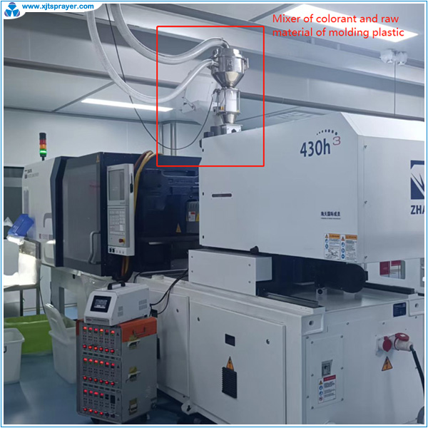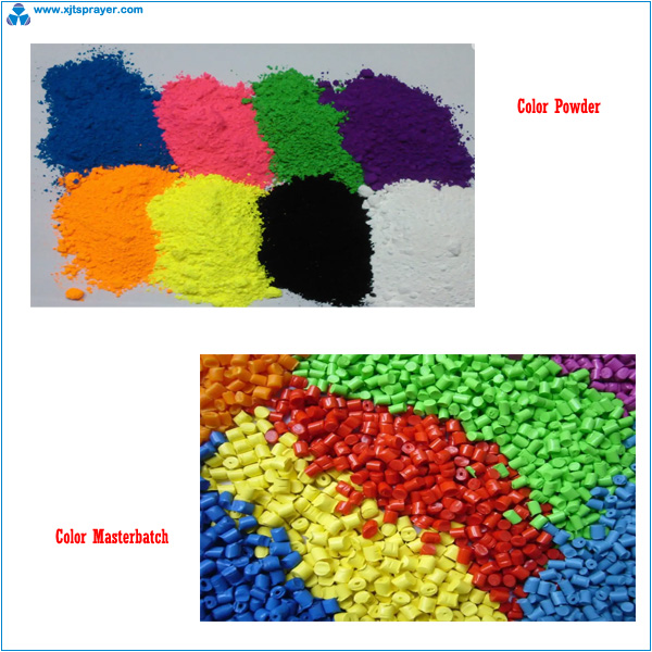 In the industrial production, it is necessary to mix well colorant and the molding plastic before the mixture is sent into the molding machine. Sometimes, the raw materials supplying line will be equiped with a mixer that assures sufficient mixing. If mixing is not sufficient, the color of one batch of finished plastic is not consistent.