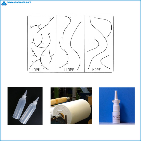 LDPE are both homopolymer of ethylene monomer, but HDPE and LLDPE are copolymers. Normally, HDPE is copolymer of ethylene and hexene, while LLDPE is copolymer of ethylene and butene. HDPE is linear. LLDPE is almost linear although it is a little branched. However, LDPE is highly branched. The degree of linearity lead to the different physical characteristics.